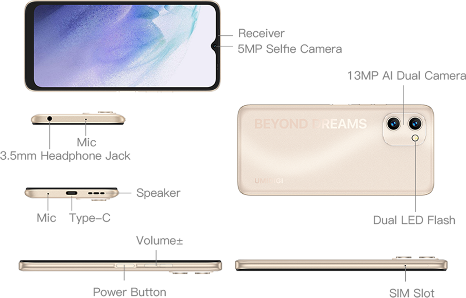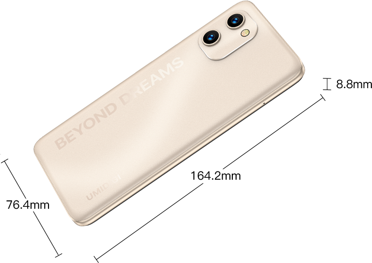 Height:164.2mm *Data provided by UMIDIGI lab. Industry measurement methods may vary, and therefore actual results may differ. |